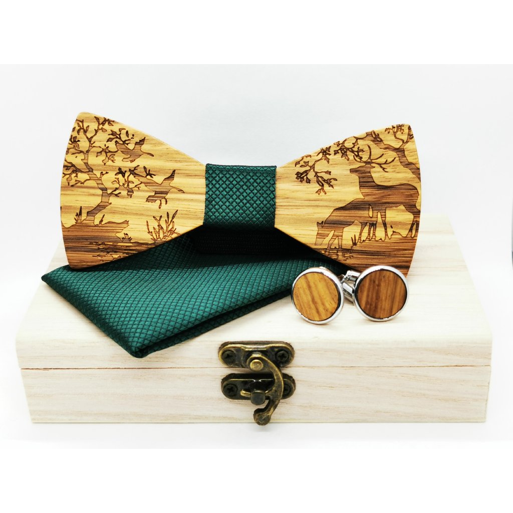 Dřevěný motýlek sada zelená s jelenem