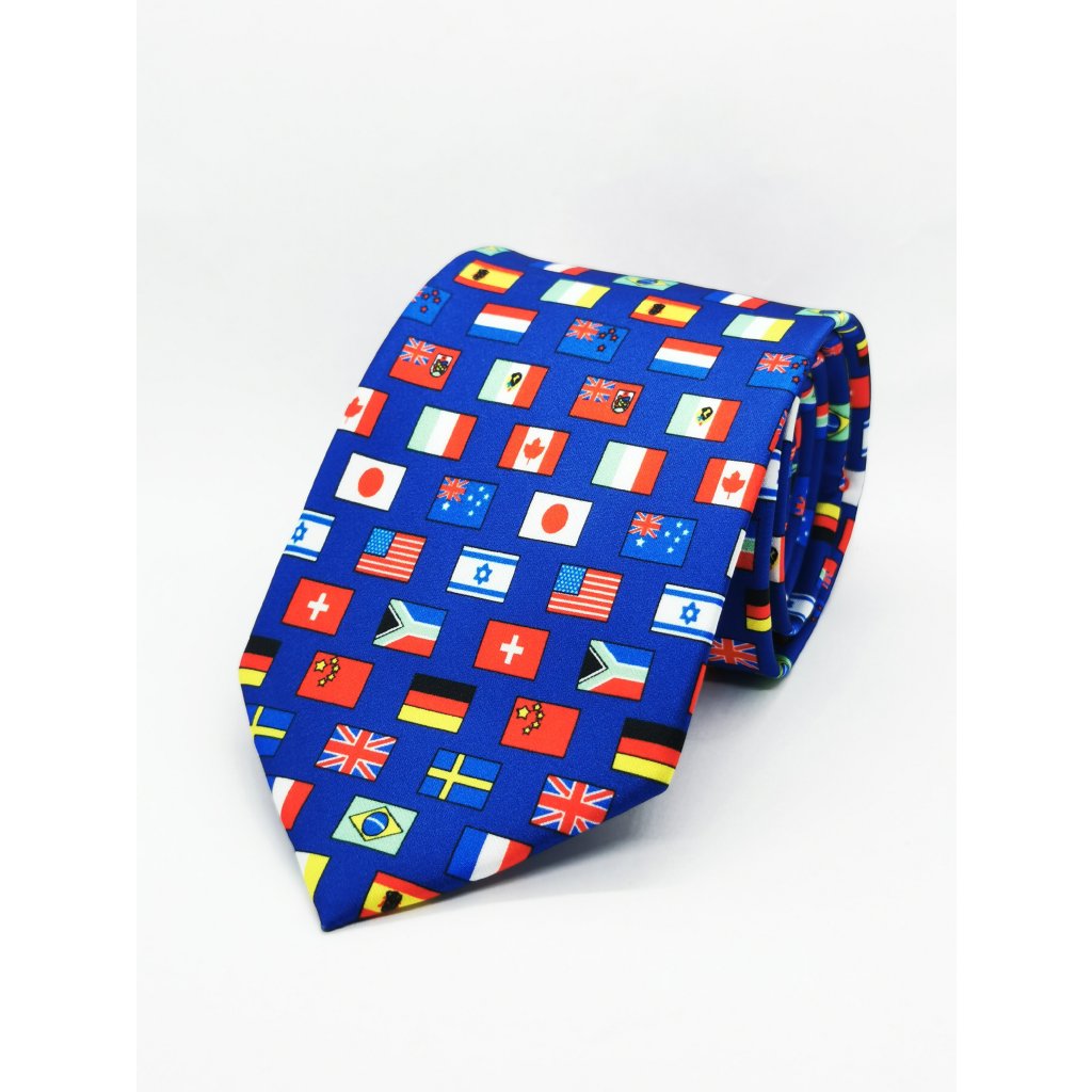 Kravata modrá s vlajkami