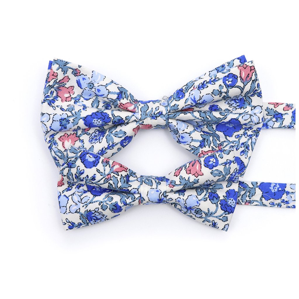 Motýlci pro otce a syna s květinovým vzorem modro-růžový
