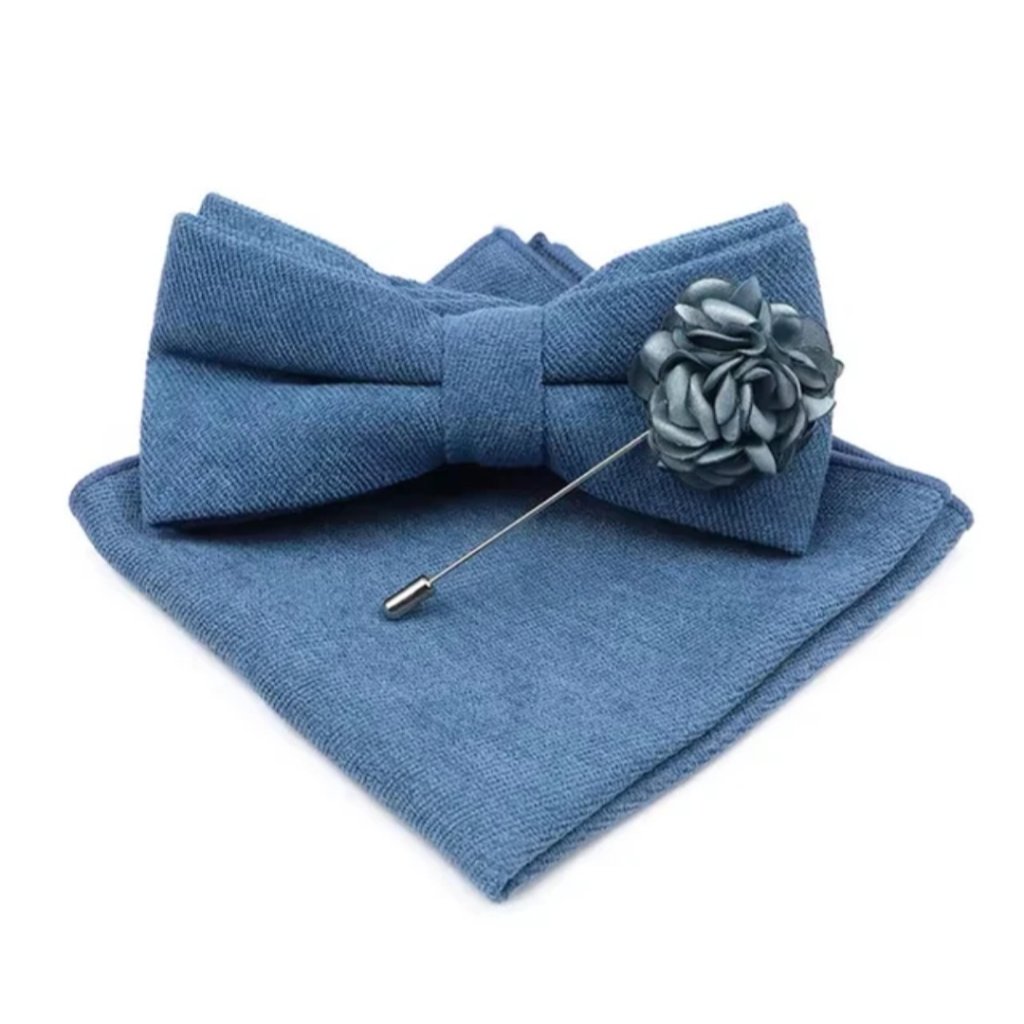 Motýlek má klasický tvar a je navržen tak, aby pohodlně držel a působil elegantně po celý den. Kapesníček perfektně doplní vzhled saka a dodá outfitu šmrnc. Stylová brož na klopu saka představuje jemný detail, který zvýrazní osobitý styl nositele.