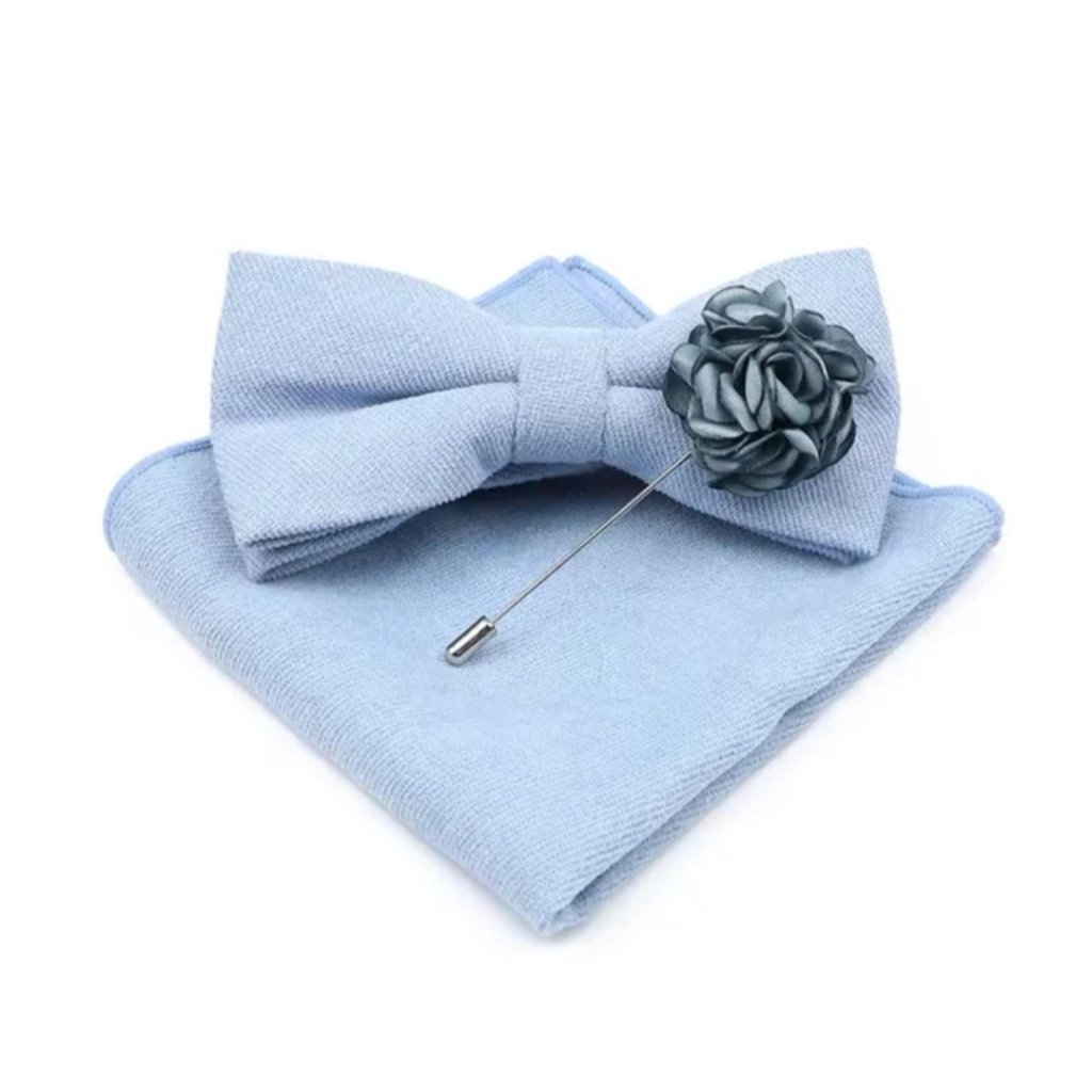 Motýlek má klasický tvar a je navržen tak, aby pohodlně držel a působil elegantně po celý den. Kapesníček perfektně doplní vzhled saka a dodá outfitu šmrnc. Stylová brož na klopu saka představuje jemný detail, který zvýrazní osobitý styl nositele.