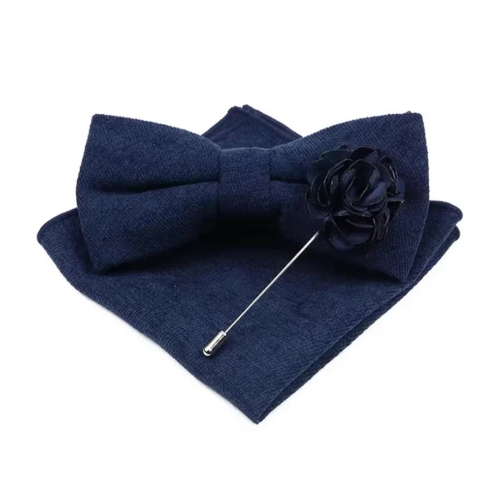 Motýlek má klasický tvar a je navržen tak, aby pohodlně držel a působil elegantně po celý den. Kapesníček perfektně doplní vzhled saka a dodá outfitu šmrnc. Stylová brož na klopu saka představuje jemný detail, který zvýrazní osobitý styl nositele.