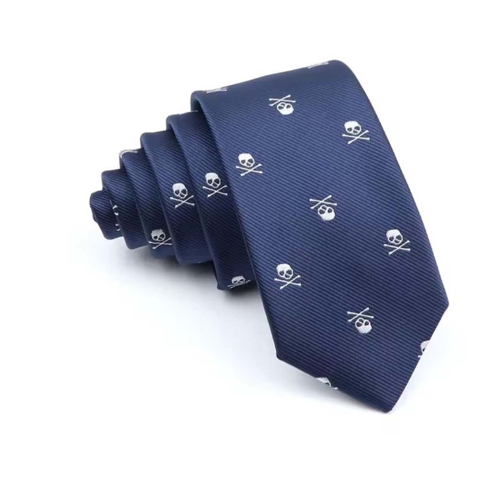 Tmavě modrá kravata s lebkou